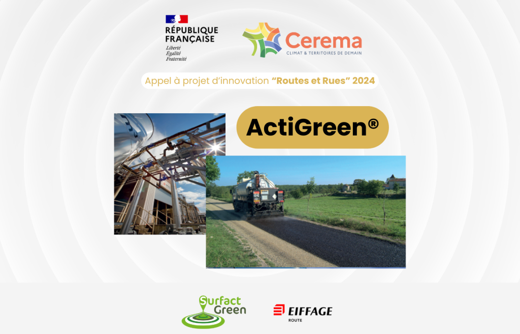 Nous sommes heureux d’annoncer que la solution ActiGreen®, émulsion de bitume développée en partenariat avec Eiffage Route, a été primée par le Cerema dans le cadre de l’appel à projet d’innovation « Routes et Rues 2024 » !