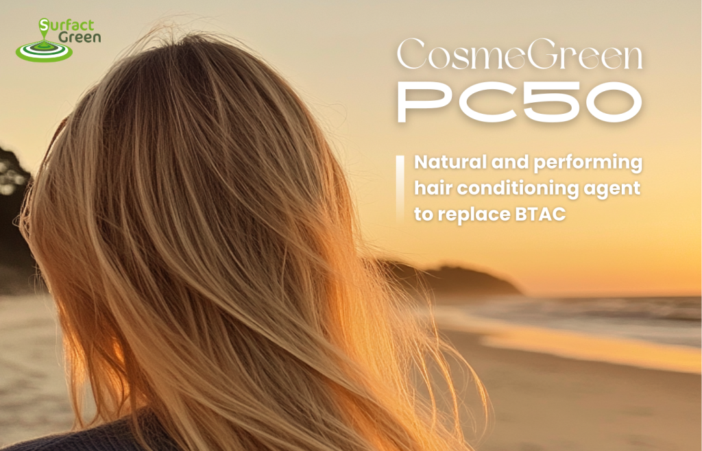 Le CosmeGreen PC50, c’est un agent conditionneur biosourcé de haute performance, répondant à une forte demande de l’industrie pour des formulations plus naturelles et durables. Le PC50 permet aux acteurs de l’industrie cosmétique de remplacer le BTAC dans leurs formulations haircare, sans compromis sur l’efficacité.