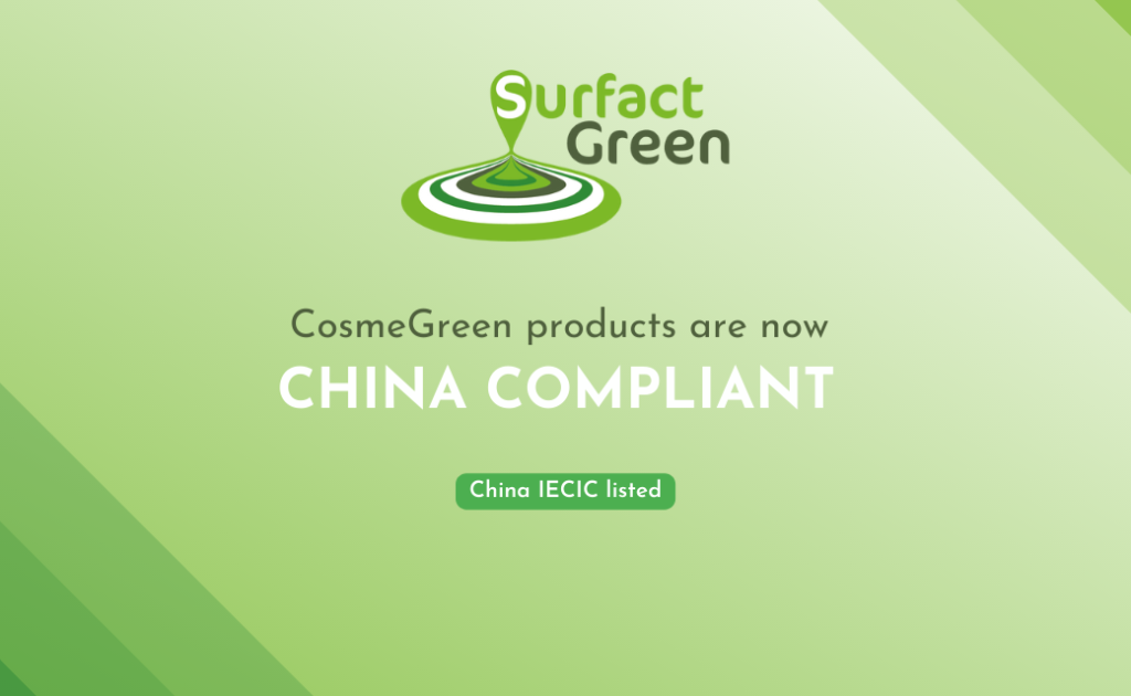Nous sommes ravis de vous annoncer que nos trois produits de la gamme CosmeGreen (ES1822+, MB1618 et MS1822) sont désormais enregistrés et éligibles à la vente sur le marché Chinois.